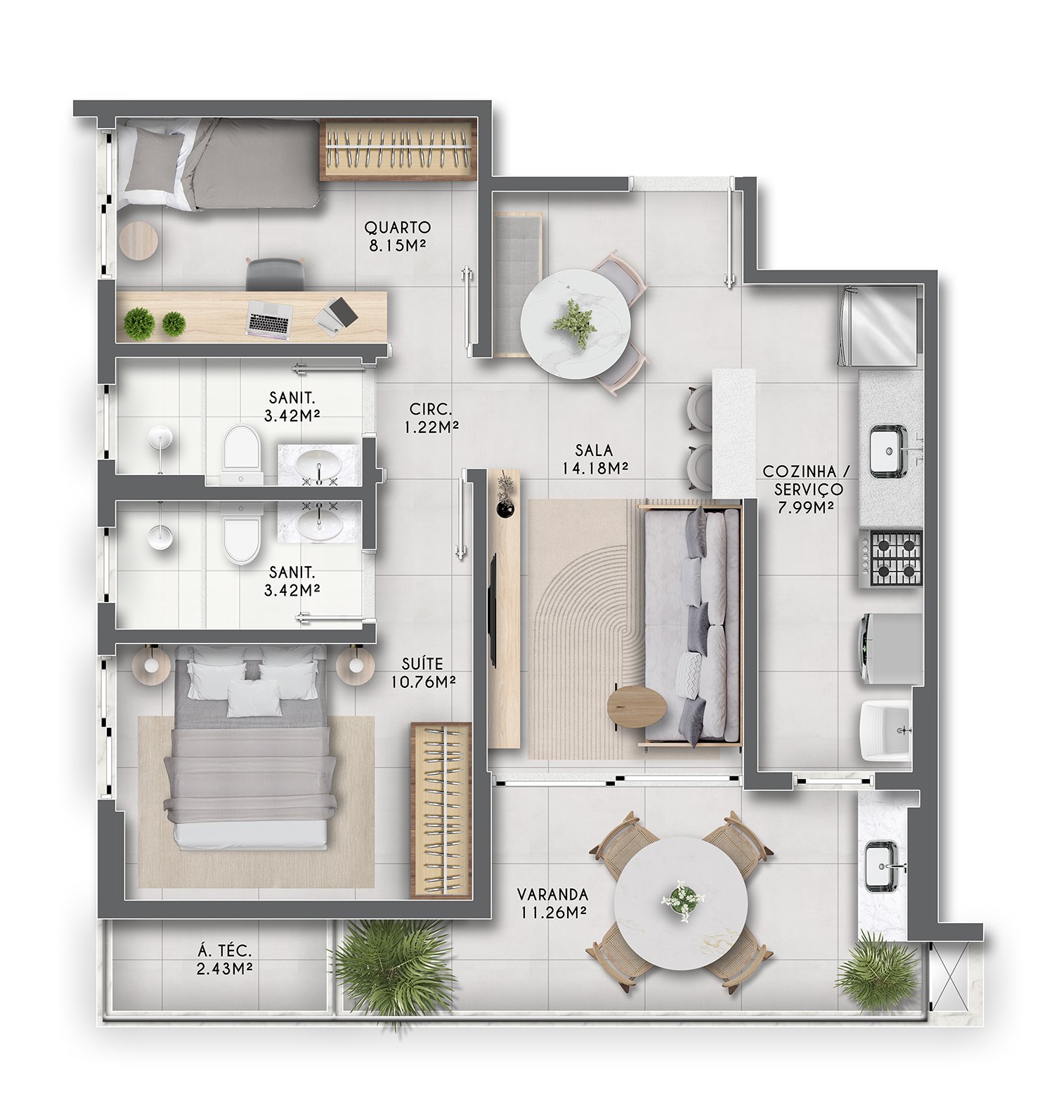 O Leaf Morro Ipiranga foi projetado para oferecer o máximo de conforto e funcionalidade, com unidades espaçosas e bem distribuídas.
